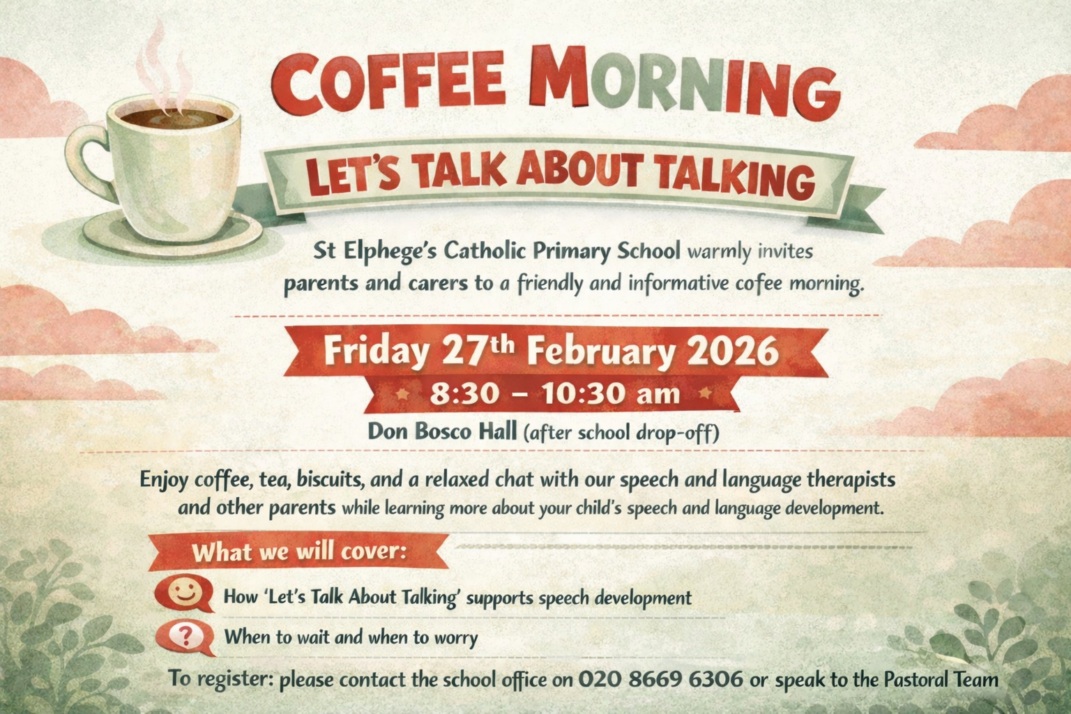 Letters Home 2025-26 PGL Liddington Parent Meeting - Tuesday 24th March 2026 347 KB Mystery Reader - Parent link 334 KB Book Week 23rd to 27th February - NEWSLETTER 563 KB Parent & Carer coffee morning - Friday 27th February 2026 2.30 MB Missio 2026 - Lenten Charity letter 349 KB Year 4 Easter Experience 25th February 2026 434 KB Science Fair 20th March 2026 608 KB Letter to Larks Parents & Carers 30th January 2026 339 KB Willow Wonder Club February 2026 Half Term Holiday Camp - registration required 1.44 MB Starting Early Years Webinar 440 KB Webinar - Supporting siblings of children with SEND 361 KB Spring Term 2026 - Important Dates 195 KB Parent Workshop - Understanding Stammering 201 KB Spring term Primary Parent webinars - Education Wellbeing Service 700 KB Promoting Sibling Harmony Webinar Spring term 2026 409 KB Parental webinar - Screen time Social Media and Gaming 529 KB Dental Coffee Morning invitation for Reception and Nursery parents & carers 168 KB Sutton Neurodevelopmental Needs One Stop Shop 187 KB Spanish club registration Spring term 2026 415 KB 2026 Curriculum Meeting dates - Reception to Year 6 347 KB Keeping well over the Christmas Break 64 Bytes Christingle Children’s Service 23rd December 2025 329 KB Newsletter 11th December 2025 1.51 MB The Times Top 1000 Schools 374 KB Christmas Even Mass 2025 423 KB Invitation to Parenting Group on Supporting Child Anxiety 697 KB PPG Letter - November 2025 352 KB Good Hand Hygiene December 2025 371 KB KS2 Carol Service Letter to Parents 433 KB Letter to Larks Parents & Carers 131 KB Scarlet Fever letter 24.11.25 288 KB Year 3 - St John - staffing update 340 KB School Attendance Autumn 2025 380 KB Attendance penalty notice information 179 KB Mrs Duffy 332 KB Autumn Term important dates 244 KB Saturday Activity club with Mrs Hawkes 293 KB Autumn writing challenge - additional information 368 KB Nursery learning journey M-F children 601 KB Harvest Festival Appeal 2025 363 KB Breck Foundation - Year 6 parental letter 342 KB Parent workshop October 2025 351 KB Nut Free lunch and snack letter October 2025 401 KB Reading Initiative parent letter 364 KB Applying for a Junior Place 2026 225 KB Starting School - Primary 2026 249 KB Breck Foundation - Year 6 Parent Letter 342 KB Parent Workshop Maths and English October 2025 351 KB Nut Free Packed Lunches and Snacks Reminder - October 2025 401 KB Reading Initiatives Reminder Letter to Parents 364 KB Reception Parents - Drop off Arrangements 325 KB Year 2 Mary Anning Workshop 346 KB Reception Curriculum and Social Evening 382 KB Parking Reminder - Letter from the Head Teacher 336 KB Coffee Morning 26th September 2025 775 KB Parent PDA Course 8th October 2025 759 KB CRe8 Football - September 2025 Registration 435 KB Welcome Back Letter from the Executive Head Teacher 434 KB Autumn Term Parent Curriculum Meetings Years 1-6 528 KB Junior PE Kit 483 KB Year 1 & 2 PE Kit Letter 483 KB Willow Dance Club - September 2025 Registration 375 KB Spanish Club - September 2025 Registration 269 KB Welcome Back - A Letter from the Head Teacher 339 KB Letters Home 2024-25 Sutton School Nursing Parent Letter Autumn 2025 2.78 MB End of Year Letter to Parents & Carers July 2025 341 KB New Classes September 2025 350 KB Parent Webinars Primary Autumn Term Schedule 1.45 MB Parent Webinars Early Years Autumn Term Schedule 500 KB Small Change Big Difference - Adapt to Learn Course 538 KB Being a Parent - Course Registration 658 KB Summer Term Important Dates (Updated 8th July 2025) 147 KB Reception Transition Picnic Update 513 KB Warmer Weather Reminders 641 KB Welcome to Year 3 2025 - Parental Presentation 6.74 MB KS2 Sports Day 8th July 2025 - Parent Letter 322 KB Year 6 RSHE - Parent Letter 361 KB Year 6 Fun Evening Friday 18th July 344 KB Year 2 Transition Activities July 2025 402 KB Reception Transition Activities July 2025 371 KB Finding Your Feet Webinar Summer 2025 1018 KB Building Resilience Coffee Morning 11th July 2025 1.04 MB Warmer Weather Letter 337 KB Toilet Time Webinar Invite - Parents & Carers Early Years Transition 275 KB Year 5 Pilgrims of Hope Pilgrimage 126 KB Wonderclub Summer Camp July to August 2025 1.89 MB Miss Correya - Parental Update 340 KB Pilgrims of Hope Community Activity - Toilet Twinning 350 KB Year 2 KS1 Assessment Dates for Parents 514 KB Year 3 RSHE - Parent Letter 418 KB Sutton Parent Carer Feedback Link 194 KB EYFS RSHE - Parent Letter 152 KB Summer Term Important Dates (Updated) 208 KB Reception to Year 1 Transition September 2025 145 KB Year 2 to Year 3 Transition September 2025 129 KB Year 4 RSHE - Parent Letter 342 KB Year 5 RSHE - Parent Letter 332 KB Year 1 & 2 RSHE - Parent Letter 350 KB Year 5 & 6 Parental Webinar - Managing Screen Time 841 KB Year 6 Hoodie Order Letter 2025 380 KB Mother Mary Mass 22nd May 2025 - Flower Donation Request 463 KB Year 6 Parent Transition Workshop Invitation 409 KB Parent Governor Election Ballot 2025 1.53 MB Infant Rosary Timetable May 2025 746 KB Reception Learning Journey Parental Invitation 15th May 2025 598 KB Sutton Attendance Team - Parent Newsletter 2025 230 KB Parent/Carer Supportive Online Session - 21st May 2025 526 KB Year 2 Parents & Carers Request for Donations 378 KB Year 6 Important Dates - Commencing April 2025 344 KB Pope Francis - A Letter from the Head Teacher 190 KB Kingfishers Class Teacher Update - March 2025 344 KB Spanish Club Registration - Summer Term 2025 416 KB Infant Easter Liturgy 2025 199 KB Parent Governor Nomination - March 2025 446 KB Year 1 Hearing Screening Consent Form 430 KB School Lunch Menu - Effective 22nd April 2025 Onwards 743 KB Easter Menu - Wednesday 2nd April 2025 319 KB Arbor - Parent Update 152 KB Building Independence - Parent Workshop 1.24 MB Lenten Fundraising 2025 464 KB Science Fair 2025 601 KB Book Week Newsletter - 24th to 28th February 2025 610 KB Reading Challenge - 24th February to 10th March (Inclusive) 502 KB Parents & Carers of St Peter - Mrs Oles 329 KB Year 4 Roman Day - 